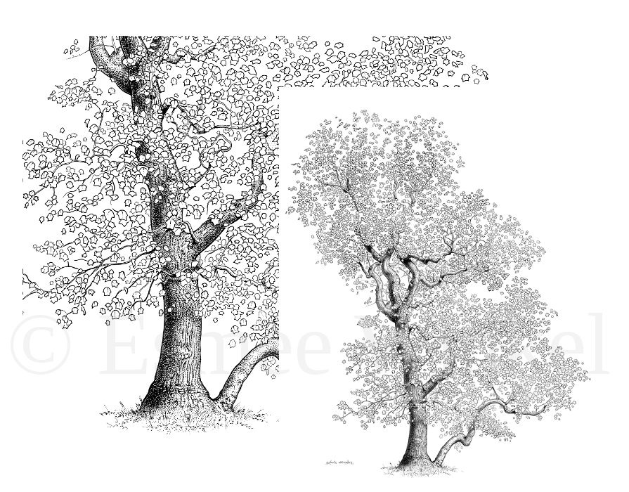 Tuliptree Liriodendron tulipifera This Tulip tree was planted in 1716 by Prof. Herman Boerhaave, prefect of the Hortus Botanicus Leiden at that time, making this specimen 300 years old in 2016. Pen and Ink on paper 50 x 40 cm (19.7 x 15.7 inch) In private collection |